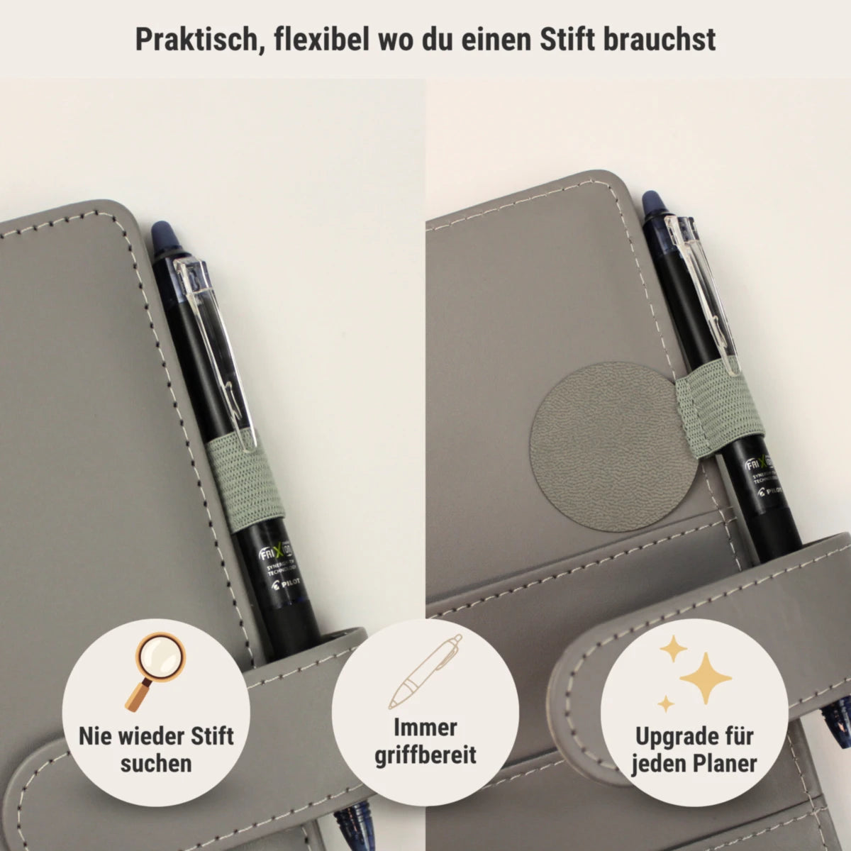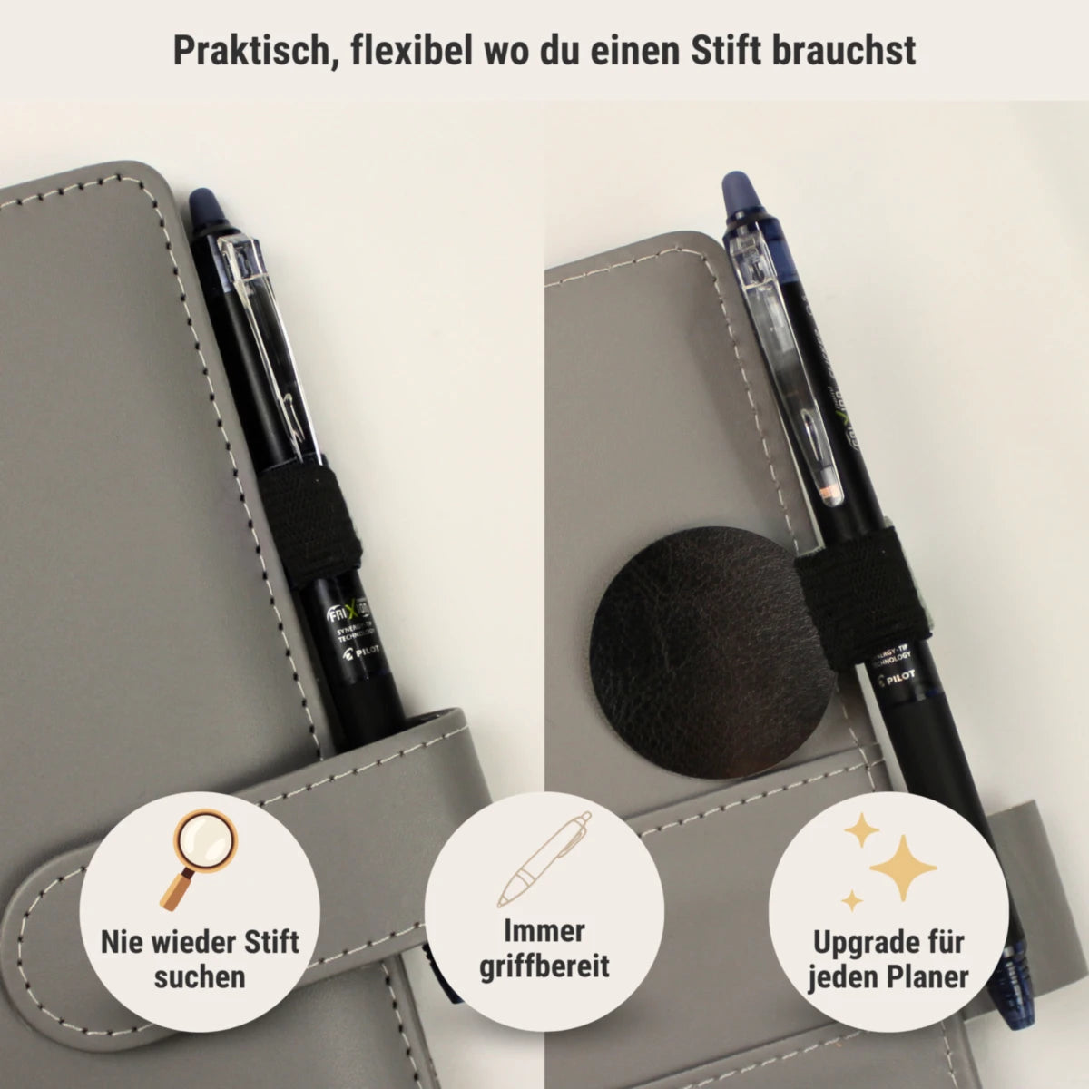 Die selbstklebende Stiftschlaufe mit rundem Patch ist die perfekte Erweiterung für deinen Planer, dein Notizbuch oder Journal. Einfach ankleben – schon hast du deine eigene Stiftschlaufe genau dort, wo du sie brauchst.