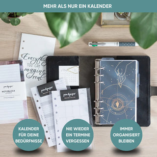 Statte deinen Planer mit Kalender und Einlagen genau passend zu deinen Bedürfnissen aus. Mit passenden dekorativen Einlagen und nützlichen Registern gibst du deinem Planer eine persönliche Note.